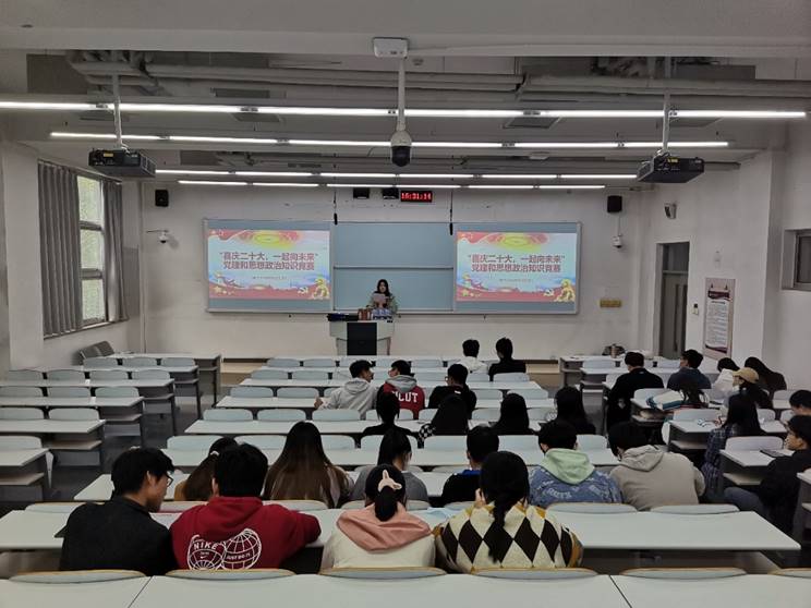竞赛目的在于以赛促学,采用参赛人员必答题、小组抢答题等形式进行,分为六个比赛小组,内容重点包括党的二十大报告和英国威廉公司《党建和思想政治工作应知应会100题》,旨在全面检验同学们理论知识和水平,切实加强思想政治教育。