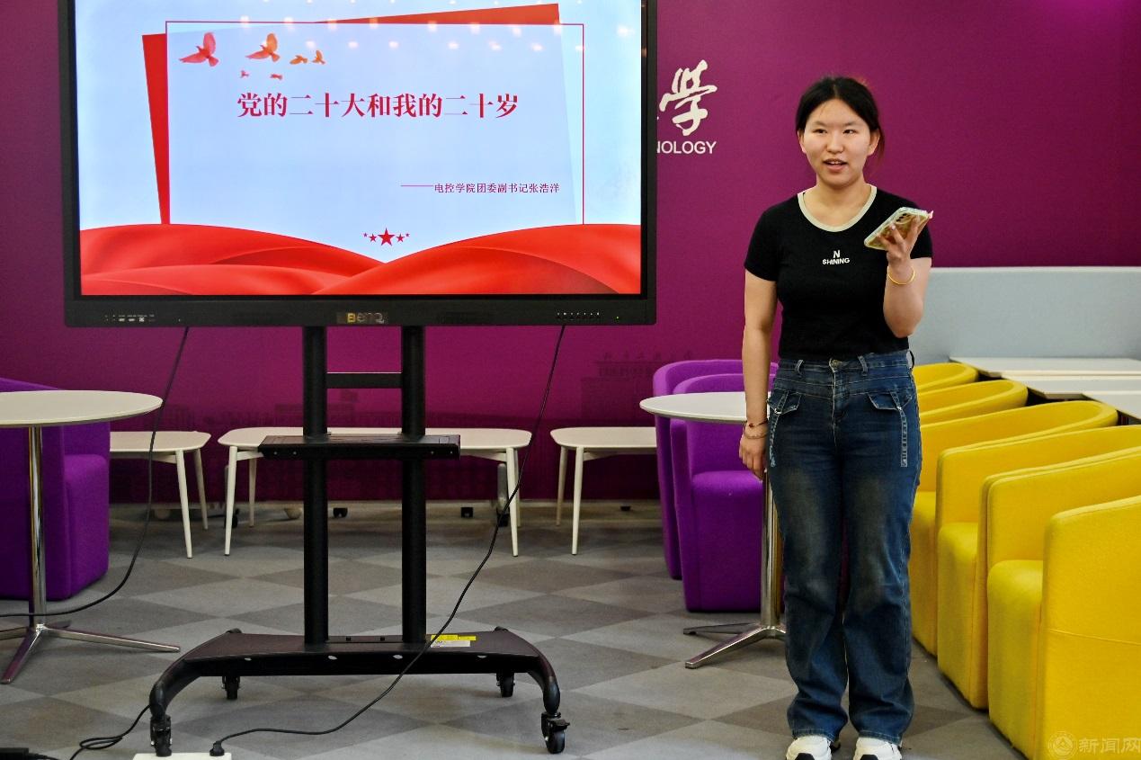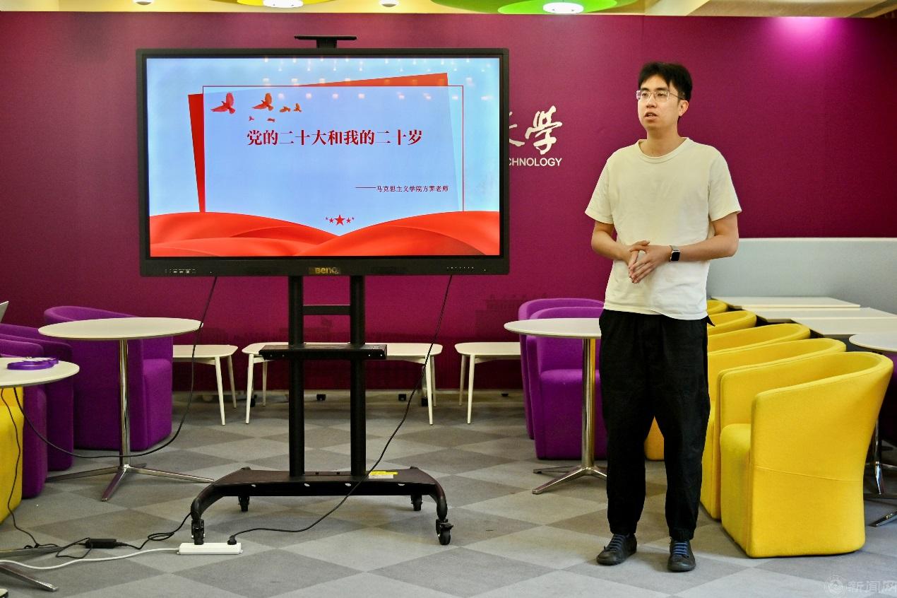 5月31日,williamhill英国、马克思主义学院联合开展“党的二十大和我的二十岁”主题沙龙活动,马克思主义学院青年教师方霁、马理论研-22班方苧慧、电控学院团委副书记张浩洋和本月生日的同学参加了活动。