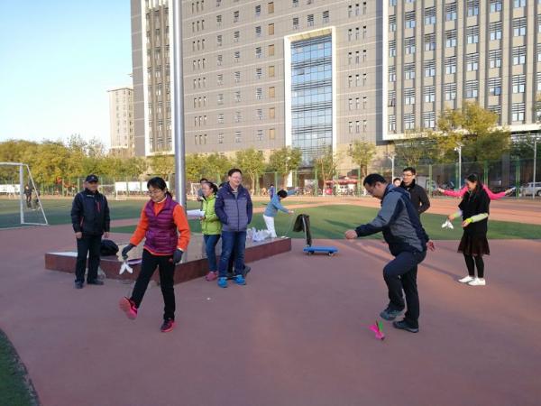学院教职工积极踊跃参与此次活动,趣味运动会包含跳绳、踢毽、定点投篮、平板支撑、俯卧撑等5个比赛项目,老师们赛前进行热身后,以饱满的热情投入到比赛中,充分享受运动带来的乐趣。趣味运动会结束后,部分老师在篮球场进行了篮球友谊赛。