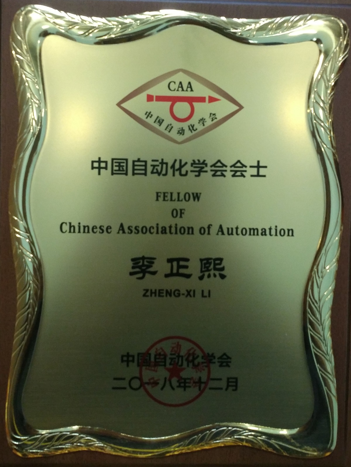 本次中国自动化学会会士共授予了22位自动化、信息与智能科学领域的杰出科技工作者,以表彰其在上述领域的卓越成就和重大贡献。与李正熙教授同时授予会士的主要控制领域专家有:陈杰(同济大学)、戴琼海(清华大学)、邓志东(清华大学)、段广仁(哈尔滨工业大学)、付敏跃(广东工业大学)、关新平(上海交通大学)、洪奕光(中科院系统所)、候忠生(北京交通大学)、李少远(上海交通大学)、苏宏业(浙江大学)、王成红(国家自然科学基金委)、王伟(大连理工大学)、王耀南(湖南大学)、吴朝晖(浙江大学)、吴思(北京大学)、谢胜利(广东工业大学)、薛安克(杭州电子科技大学)、薛建儒(西安交通大学)、杨孟飞(中国空间技术研究院)、于海滨(中科院沈阳自动化所)、张剑武(冶金自动化研究设计院)。中国工程院周济院士,中国自动化学会会士、中国自动化学会理事长郑南宁院士,中国自动化学会会士、中国自动化学会第九届理事长孙优贤院士为当选会士授予奖牌。