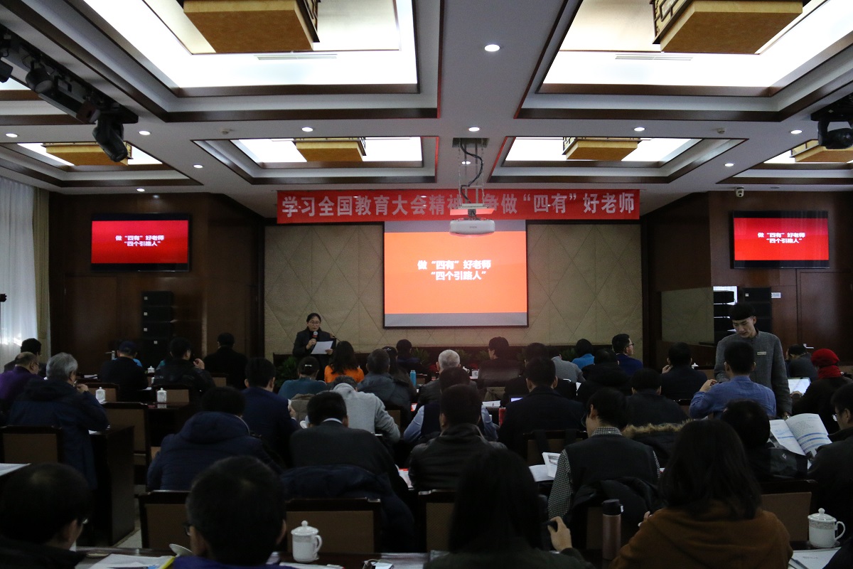 为深入学习贯彻习近平新时代中国特色社会主义思想,全面落实全国和北京市教育大会精神,扎实落实立德树人根本任务,williamhill英国于12月7日组织召开了师德建设交流研讨会。本次研讨会也是学院落实学校2018年开展的“做新时代‘四有’好老师和‘四个引路人’”学习实践活动的内容之一。首都师范大学教师工作部长苏寄宛,学校人事处长、教师工作部部长毛燕梅、学院全体教职工近百人参加了培训研讨,会议由学院党委书记李颖宏主持。