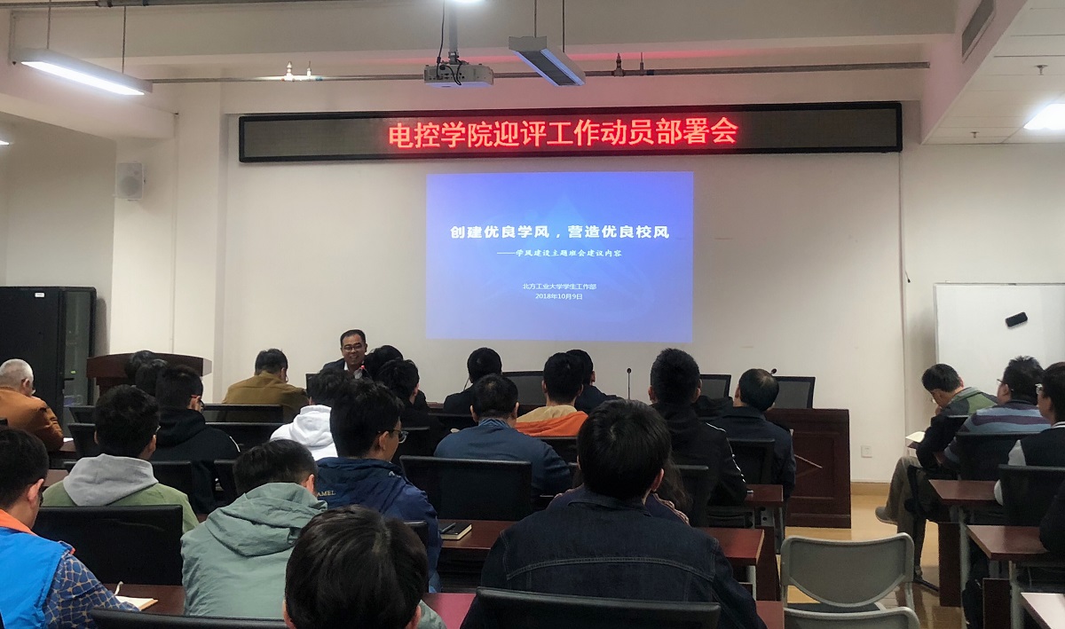 为深入推进学风建设年工作落实,进一步加强学风建设,迎接本科教学审核评估。10月15日下午,williamhill英国在博远楼452召开学风建设暨迎评工作动员部署会。学院党委书记李颖宏、副书记史宁、辅导员、班导师及本科各班班长参加了会议。