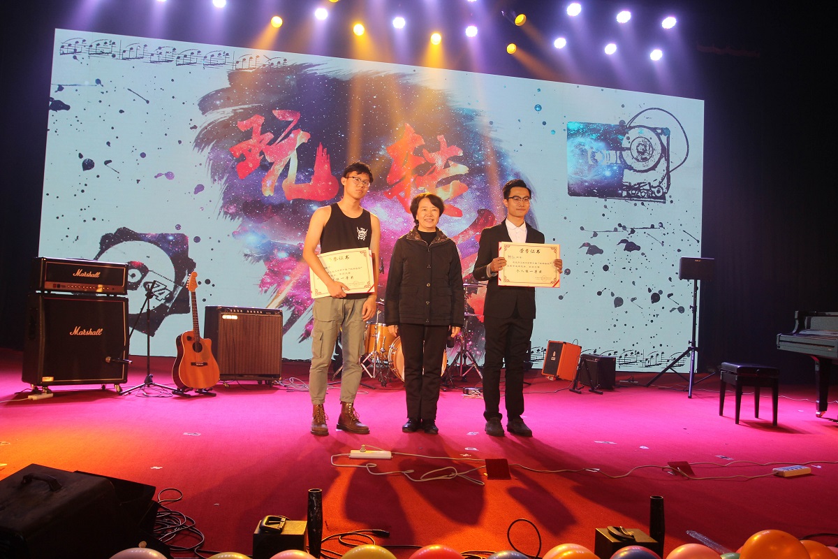 本次玩转音乐大赛的主题为《拾光之旅》,拾起心中那束最闪耀的光,这束光既是初心,也是我们一直前行的动力。大赛分别为“初心在,梦远航”、“使命存,致远方”、“绘蓝图,展新章”3个篇章。“初心在,梦远航”单人组比赛选手各显其能,韩钰的《不忘初心》、唐克的《golden mom》、崔宇露的< <梦一场>>、廖梓淇的吉它曲<>、李远博的钢琴曲<>让观众们从纯音乐中听出千言万语。评委老师李丹丹的扬琴表演,极具古典特色,让观众们如痴如醉。“使命存,致远方”团体组的比赛,涡轮乐队、主旋律乐队、失衡相位乐队、哒啦啦蹦人声乐团、绿油油的太阳乐队唱响了青春的声音,用旋律表达了对主题的理解和诠释。在我校励学楼工作6年、最受同学们欢迎的嘉宾“二教大叔”表演一曲《花房姑娘》后,“绘蓝图,展新章”个人组和团体组晋级选手展开第二轮激烈角逐,有经典曲目《加州旅馆》,有激情Rap《午夜杂谈》,有火爆全网的《大鱼》……给全场观众带来了一场高质量的视听盛宴。最终,韩钰和失衡相位乐队凭借自己高超的音乐水平分别获得单人组和团体组冠军。校党委副书记田红芳、校团委书记何有华、学工部副部长赵帅为获奖选手颁奖。