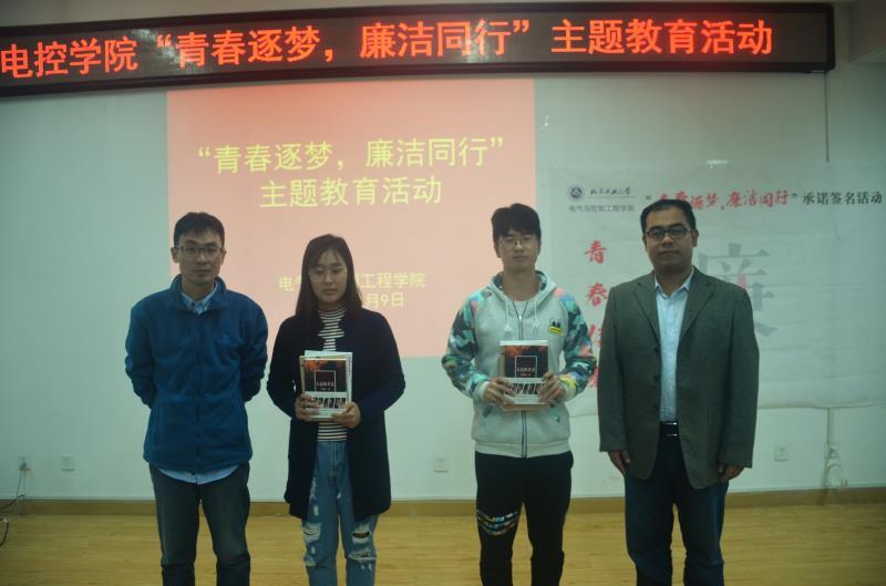 电控学院党委高度重视校园廉洁文化建设,精心组织策划了“青春逐梦,廉洁同行”系列主题教育活动,旨在深入推进大学生廉洁教育,把廉政教育与大学生思想政治教育有机地结合起来,积极引导和培养大学生树立正确的理想信念、道德观念和法纪意识,营造“青·廉同行”“以廉为荣、以贪为耻”的校园廉洁文化氛围,促进学生全面健康成长。本次活动历时一个月,分为青春学廉、青春倡廉、青春思廉三个阶段。“青春学廉”阶段,安排了丰富多彩的学习、参观活动,组织党员、入党积极分子、学生干部深入学习习近平总书记系列重要讲话精神,特别是关于反腐倡廉工作的重要论述;“青春倡廉”阶段,重在引导同学们主动参与并身体力行,扎实开展以“廉洁·诚信·修身·成才”为内容的“青年论坛”,以“诚实守信、学术道德”为主题的“学习大讨论”,以青年学生的择业观和学生干部的政绩观为主题的“思辨会”等活动;“青春思廉”阶段,重在引发同学们的思考,在前期学习讨论的基础上,开展心得体会撰写和展评活动。