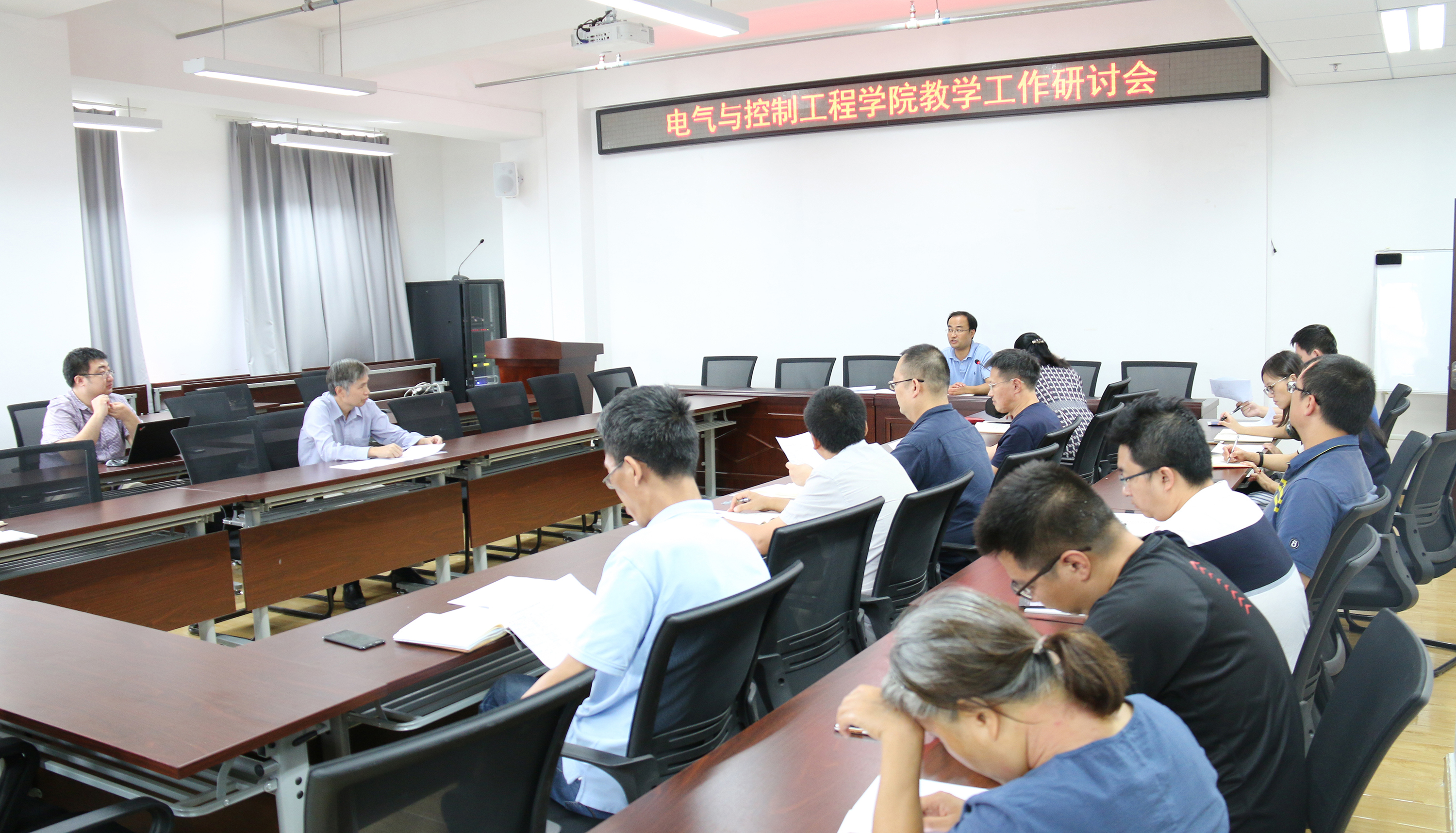 王力院长针对学院上学期教学工作中存在的问题,做了梳理,对新学期的工作提出了全面要求,包括教学、科研、博士点申报、电气专业认证、自动化实验班相关实验室建设、一带一路沿线国家留学生基地建设、学院宣传工作、迎新工作等等。要求学院教师将全员育人、全过程育人放在首位,严格要求,提高规范,开拓创新,推动学院工作可持续发展。