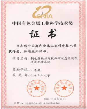 近日,2016年中国有色金属工业科学技术奖颁布。我校《铜电解精炼电极异常状态检测及快速处理系统》和《炭素阳极回转窑煅烧过程综合优化控制系统研制》项目分获一等奖和三等奖。