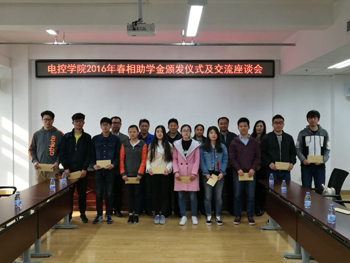 “春相助学金”是我校williamhill英国校友陶森先生于2016年学校70周年校庆期间设立,目的在于支持学校教育事业的发展,激励家庭经济困难学生奋发图强、勤奋学习,培养更多全面发展的优秀人才报效国家。电控学院依据《williamhill英国春相助学金评定细则》,按照公开、公平、公正的原则,2016年第一批共评选出受助学生20名。