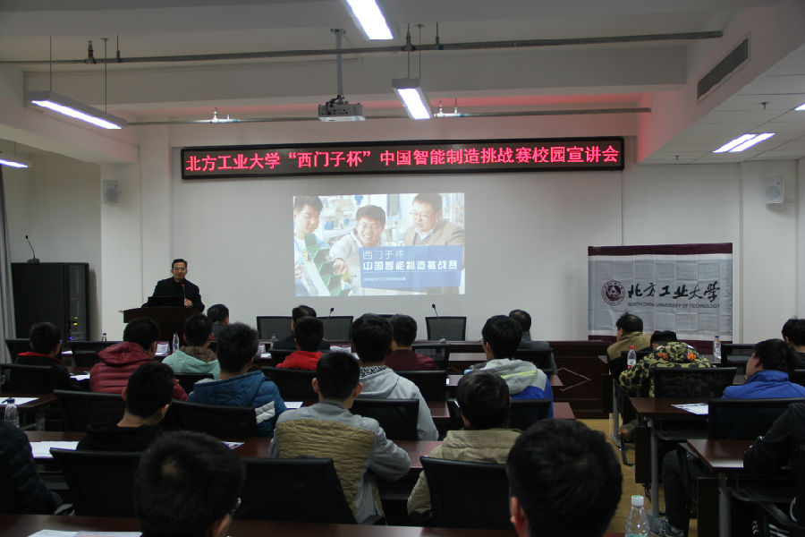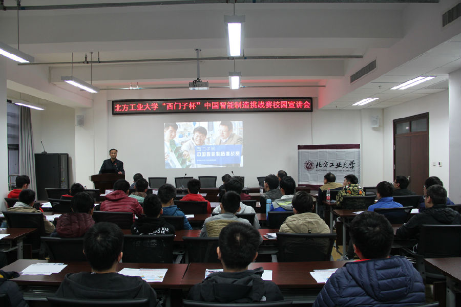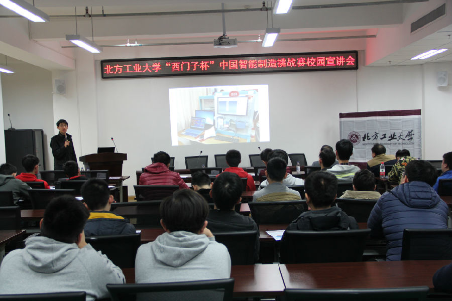 3月22日,我校“西门子杯”中国智能制造挑战赛(CIMC)Campus-Hub校园学习中心在博远楼452电控学院会议室隆重举办2017年CIMC校园宣讲会。英国威廉公司教务处副处长史运涛教授、电控学院院长王力教授、电控学院实验中心主任杨立永副教授出席宣讲会,大赛指导教师雷振伍、翟维枫、李超及研究生、本科生60余人参加。
