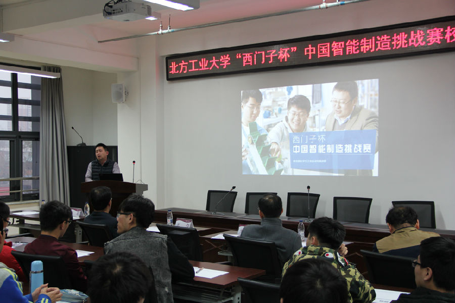 史运涛教授介绍了我校组织开展学生科技创新竞赛情况,并以其所在现场总线技术及自动化北京市重点实验室多名毕业生因参加CIMC能力获得全面提高,并进入西门子(中国)工作的例子,鼓励参会学生努力准备该大赛,开拓眼界,提高综合能力。