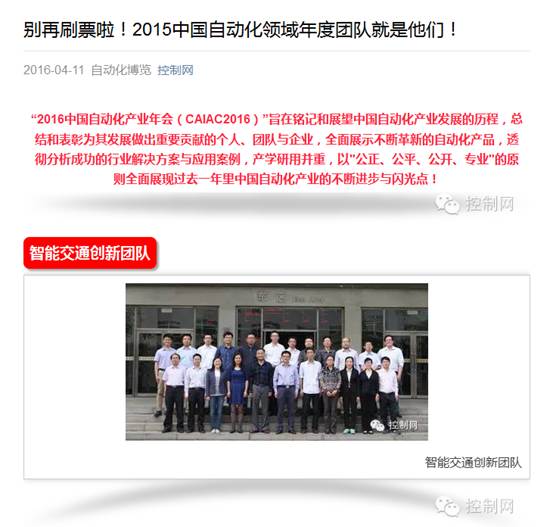 我校智能交通创新团队入选 “2015中国自动化领域年度团队”