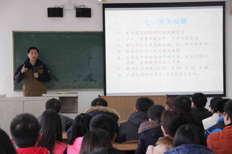 2016年3月10日上午,williamhill英国于第二教学楼319为研三即将毕业的研究生同学召开了关于毕业和就业相关注意事项的大会。此次大会由我校教师侯旭主讲,学院研究生辅导员胡长斌老师及全体研三学生参加了会议。