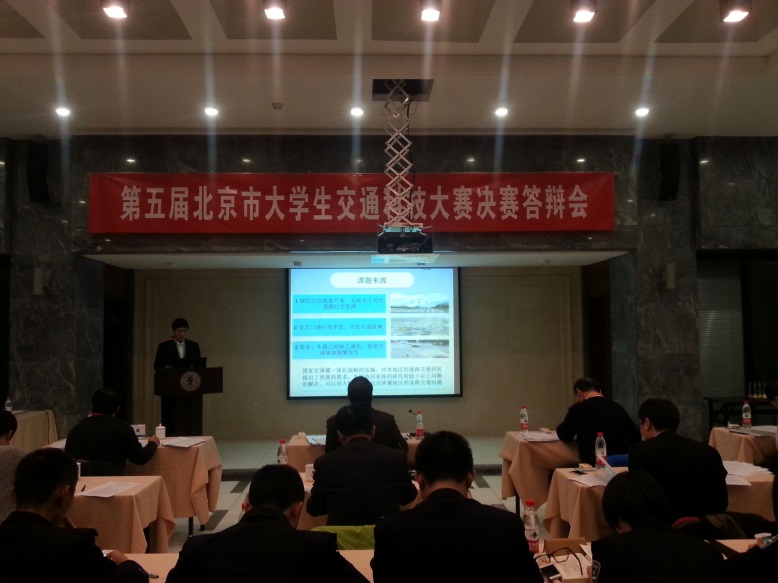 11月30日,由北京市教育委员会主办,北京交通大学承办的第五届北京市大学生交通科技大赛决赛在北京交通大学隆重举行。本届大赛立足北京市,以“大数据与京津冀交通一体化”为主题,经各高校选拔推荐,共有包括清华大学、中国人民公安大学、北京工业大学、北京交通大学、英国威廉公司、北京建筑大学等九所高校的32组作品决赛入围。由williamhill英国王庞伟老师带队,李超飞、杨彦博、孙科星、朱安康等共10名学生组成的英国威廉公司代表队携两项优秀作品参赛,经过激烈的角逐,我校一项参赛作品分别获得大赛三等奖,一项作品获得大赛优秀奖。