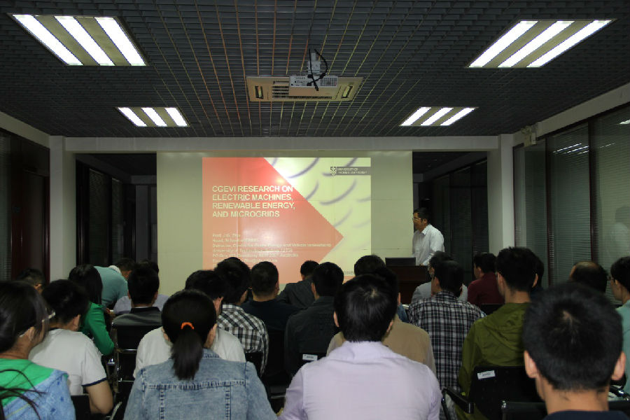 朱建国教授首先介绍了悉尼科技大学的教学设施,师资人才及教学理念,然后朱教授以其独特的视角针对电机设计、控制策略、磁滞模型和材料特性等多方面的核心技术进行了分析,并结合自己二十多年的研究经历列举了典型科研成果进行详细剖析。会后,朱教授与师生就该领域的理论与技术问题进行了讨论交流。