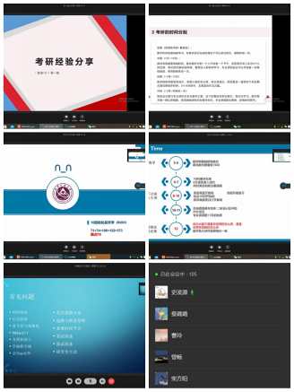 在自由提问环节,同学们积极踊跃,对于大家提到的“推荐哪些复习资料、各科成绩目标分数大概多少较合理、时间上怎么安排较合理”等问题,主讲人结合自身经历一一给予详细回答。最后,王磊老师做了总结,他勉励17级考研的同学既然有考研之志,就要不遗余力的去努力,坚持不放弃,相信自己终能到达成功的彼岸,实现自己的人生目标,服务社会、报效祖国。本次“博远工程”考研动员暨经验交流会吸引了139人报名,全年级近一半的学生线上参加。与会同学纷纷表示,学长学姐的讲解和经验分享,使大家明确了努力方向,找到了备考方法,受益匪浅。
