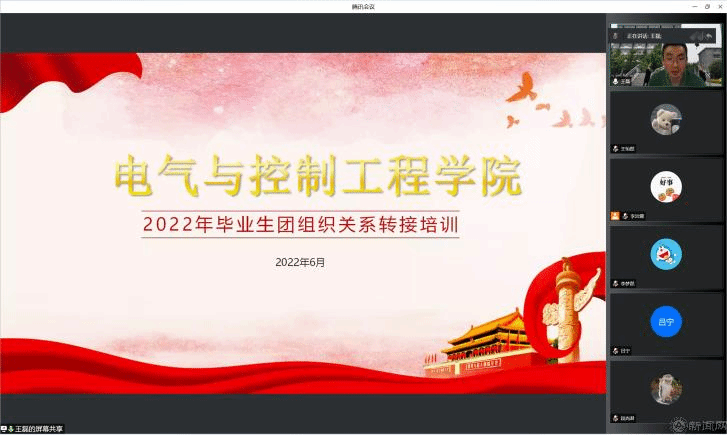 王磊从“什么是团员组织关系”“为什么要接转团组织关系”“组织关系线上转接和线下转接的关系是怎样的”等团员档案和团组织关系转接常见问题入手,对2022年团组织关系转接类型、时间安排、线上系统转出操作等做了详细的培训和讲解。针对在团关系转接过程中遇到的问题,王磊与会人员进行了交流和沟通,就同学们提出的问题进行逐一解答,会上同时对学校本学期关于毕业生毕业、离校、校园疫情防控等工作的相关安排进行了传达。