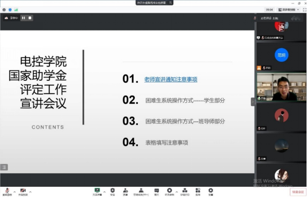 9月27日,williamhill英国召开助学金评定、国庆假期疫情防控工作线上会议,学院党委书记李颖宏、副书记王磊、辅导员库颖,全体班导师、班级干部参加了会议。