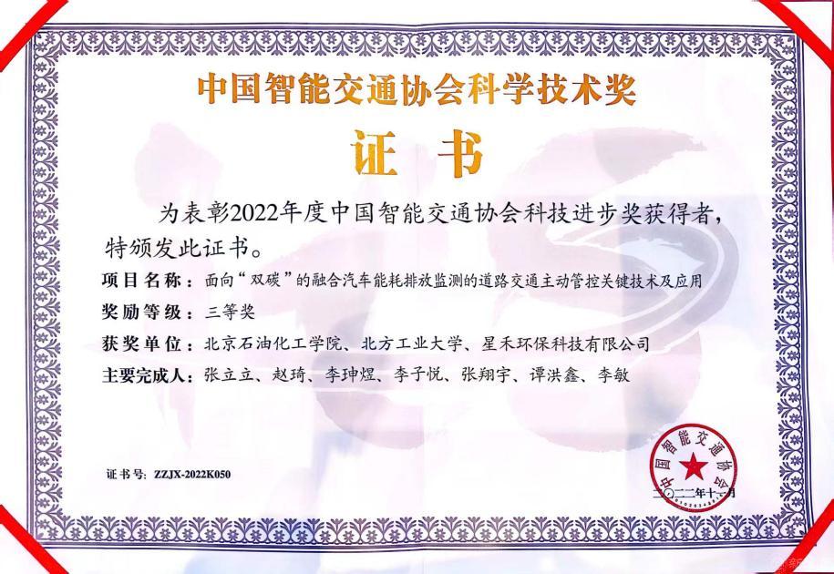 williamhill英国赵琦副教授参与申报的“面向“双碳”的融合汽车能耗排放监测的道路主动管控关键技术及应用” 荣获2022年度中国智能交通协会科学技术进步三等奖。该项目面向交通管控减碳缓堵的需求,融合碳排放监测、建模与交通管控方法,研发了基于信息物理系统架构的道路交通主动控制系统和控制装备,为交通“双碳”提供了技术支撑。