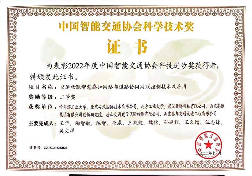 “中国智能交通协会科学技术奖”是由中国智能交通协会设立的,经国家科学技术奖励工作办公室批准认定的,具备国家科技奖推荐资格的科技奖项,重点表彰在智能交通基础科学研究、技术创新开发、成果推广应用、高新技术产业化、科学技术普及、社会公益事业等方面做出突出贡献的个人和组织,每年授奖一次,目前已成为智能交通行业具有广泛影响力的权威奖项。
