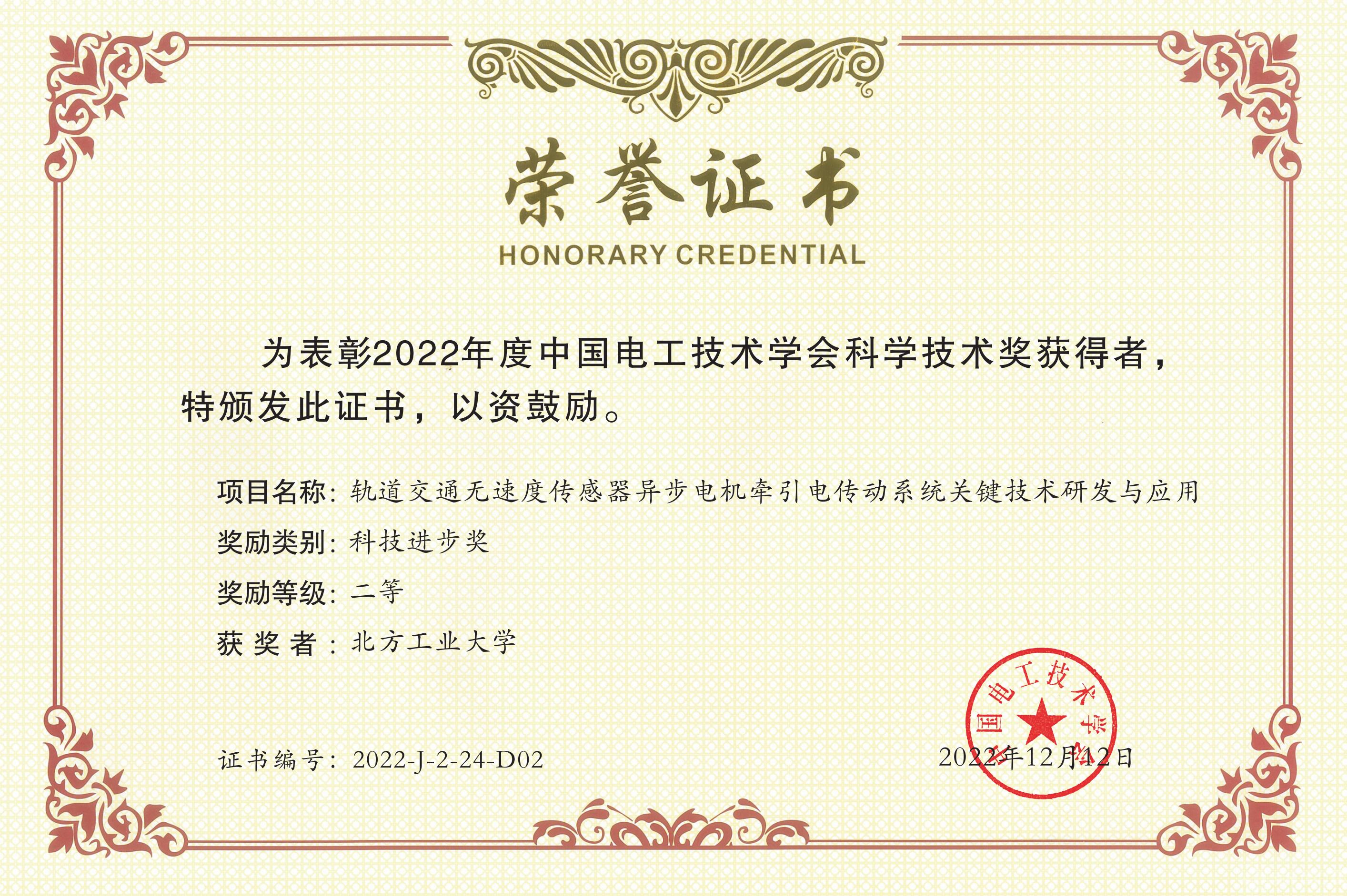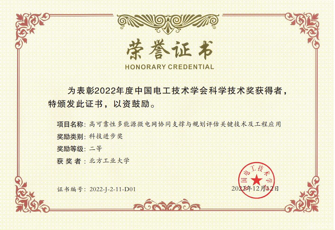 近日,中国电工技术学会公布了2022年度中国电工技术学会科学技术奖评审结果。由我院周京华教授申报的项目“高可靠性多能源微电网协同支撑与规划评估关键技术及工程应用”和苑国锋副教授申报的项目“轨道交通无速度传感器异步电机牵引电传动系统关键技术研发与应用”分获科技进步奖二等奖。