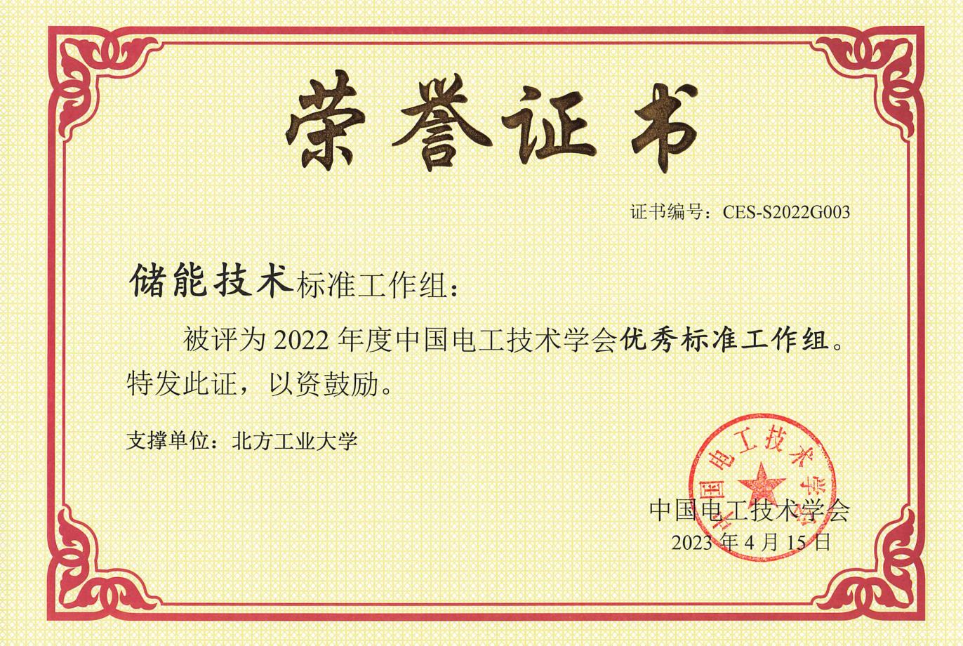 近日,中国电工技术学会公布《关于表彰2022年度中国电工技术学会优秀标准工作组及标准化工作先进个人的决定》,我校作为中国电工技术学会储能技术标准专业分会支撑单位,喜获“2022年度中国电工技术学会优秀标准工作组”。