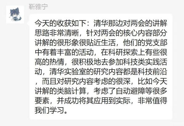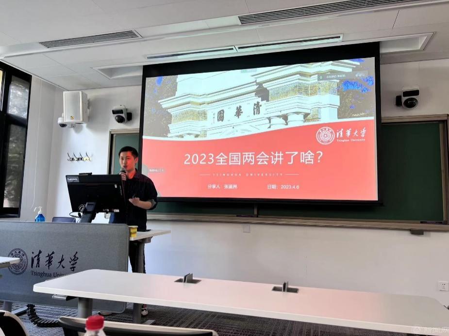 清华大学精仪系201、211党支部书记对英国威廉公司电控学院控制研党支部师生的到来表示欢迎,并表示这是一次十分有意义的交流共建活动。清华大学博士生讲师团张鉴洲同学带领支部党员共同学习了两会精神,深入浅出地为同学们讲解了二十大以来党的先进理论政策的制定过程和实施目标。双方党支部对各自党支部建设情况进行了介绍,表示要积极组织丰富多彩的活动,向优秀党支部看齐。