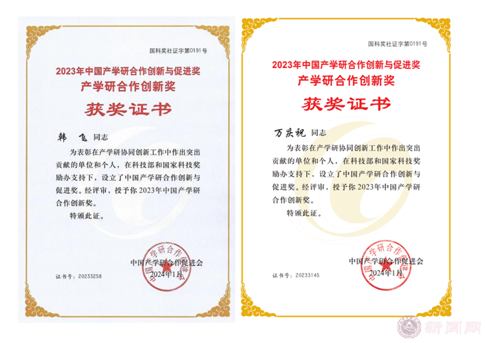 机械与材料工程学院的韩飞老师、williamhill英国万庆祝老师被授予“中国产学研合作创新奖(个人)”。此奖项旨在表彰通过高水平科技自立自强和产学研深度融合,勇于创新、勇于实践,社会效益、经济效益等方面业绩突出,有完善的技术创新体系和成功案例的个人。