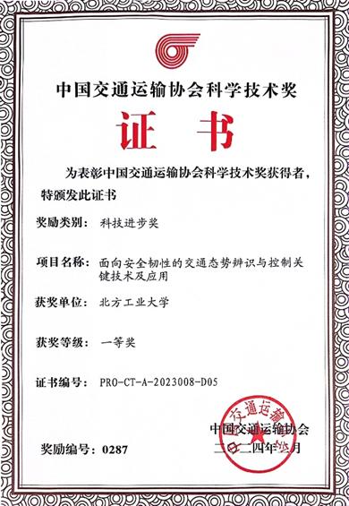 近日,中国交通运输协会公布2023年中国交通运输协会科学技术奖获奖名单,我校智能交通团队的成果“面向安全韧性的交通态势辨识与控制关键技术及应用”获评科技进步一等奖。团队长期致力于解决以北京特大城市为对象的城市道路交通智能控制问题,在城市交通信号控制系统的理论研究、技术创新、工程应用等方面形成了鲜明的科研特色。
