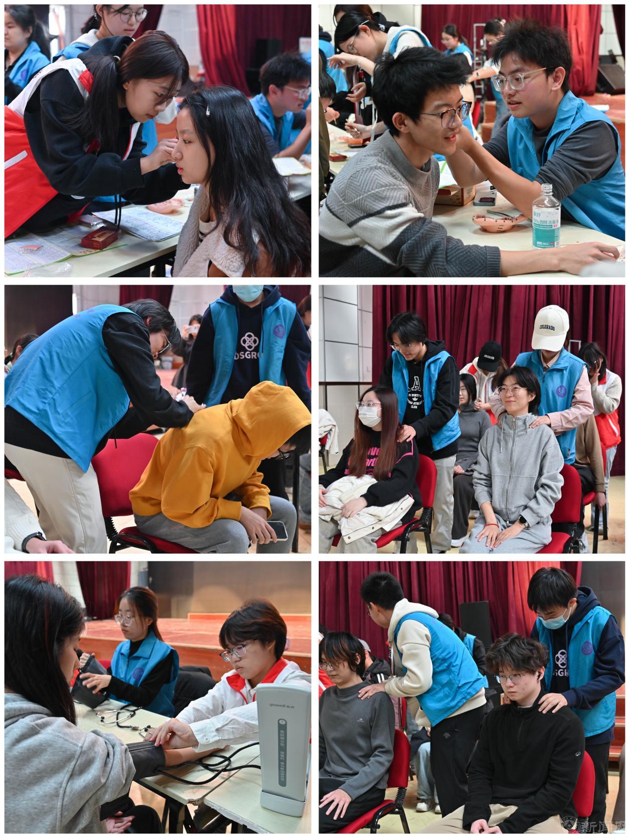 义诊活动以耳豆贴压、推拿按摩、血压检测三大特色服务为核心,为师生们带来沉浸式中医健康体验,并针对不同情况的师生,结合年龄、生活习惯给出饮食、作息建议,让健康知识听得懂,用得上,真正提高了师生的健康意识。