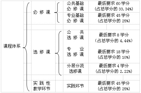 2.学分标准:修满本计划规定的总学分180学分,且符合各模块学分要求;