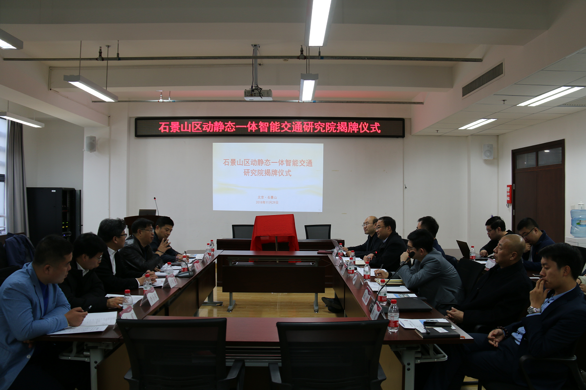 最后,王力院长、于程水总经理、汤波总经理签订了合作协议,柯军副主任、韩飞副处长、王力院长共同为“石景山区动静态一体智能交通研究院”揭牌、授牌。