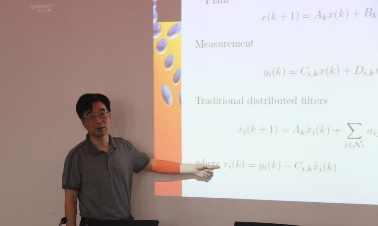 此次报告从Sensor Networks、Event-triggereing Mechanism、Distributed Kalman Filtering、 Challenges、 Our recent work 五个方面介绍了王子栋教授团队近期的研究成果,同时也为以后的研究指明了方向。报告尾声,现场老师、同学针对讲座内容提出了自己的问题,并与王子栋教授进行了交流探讨,对此次报告内容也有了更深的理解。