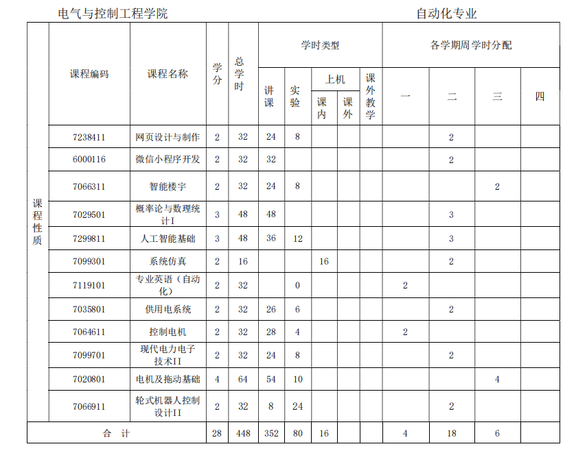 线性代数、自动控制原理、物联网技术与应用、C 程序设计、PLC 与工控组态软件、计算机控制
